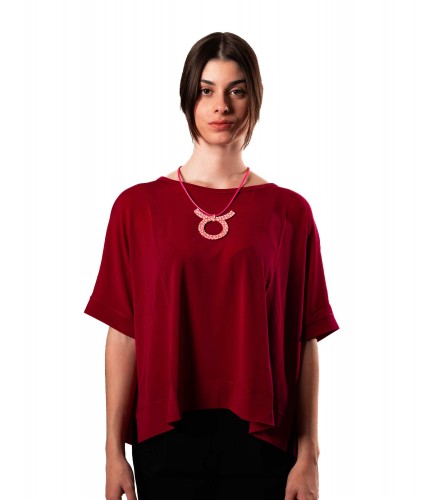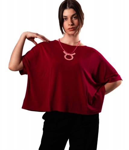 Nuestro modelo joya, un básico DeVeVa, irresistible, una camiseta oversize, cómoda, funcional y muy favorecedora realizada en punto de algodón color fresa