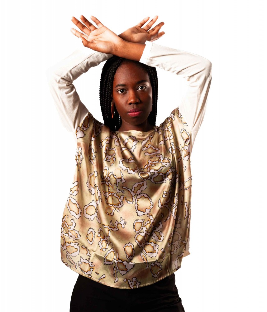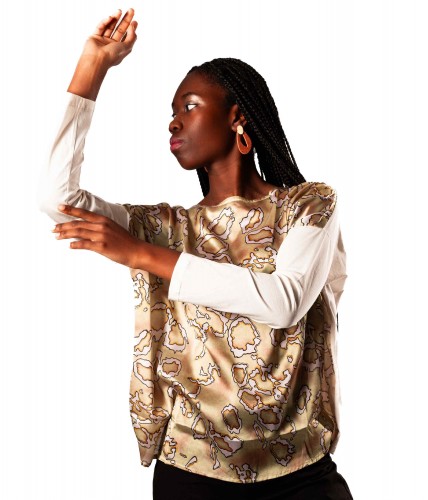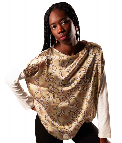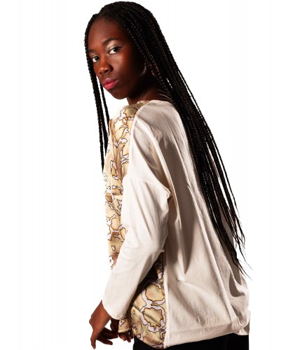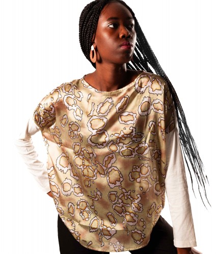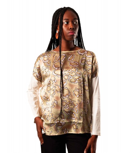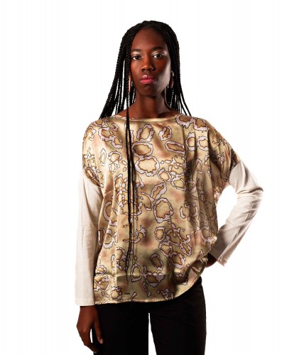 Camiseta amplia con el delantero en seda estampada y el resto en punto de algodón para darle el confort de un tejido elástico