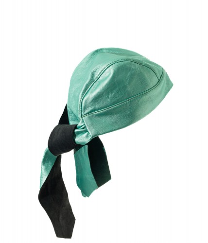 Sombrero pirata de piel bovina, estilo pañoleta. Su interior suave de popelín de algodón asegura comodidad. Ajustable con nudo en la parte posterior para un calce perfecto. Ideal para completar tu look de aventurero.