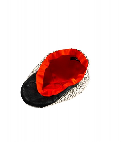 Nuestra boina de piel, una obra de arte en sí misma. Su suave piel, adornada con un cautivador estampado, te envolverá en lujo y estilo. Un accesorio atemporal que elevará cualquier look