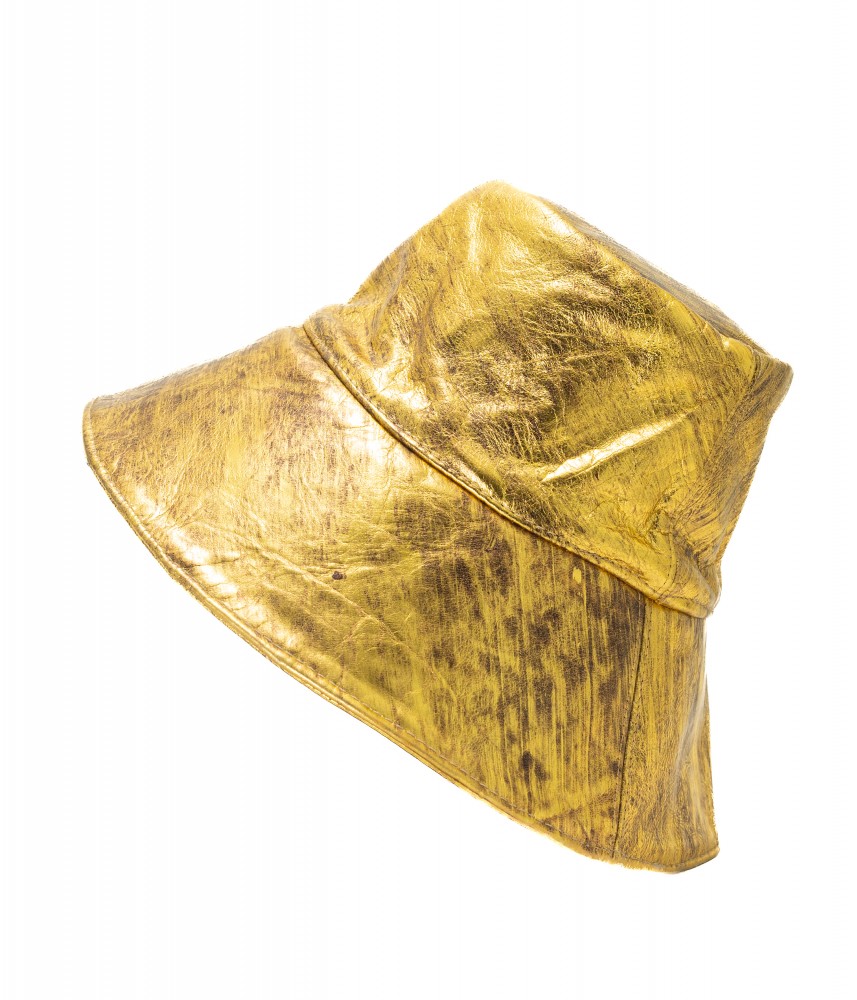 Descubre el sombrero Sarah, una pieza atemporal y versátil. Realizado en piel dorada resistente al agua,forro interior de seda y antideslizante de terciopelo