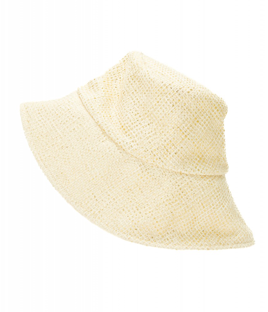 Descubre el sombrero Sarah, una pieza atemporal y versátil. Fabricado en arpillera de algodón vainilla con toques dorados.