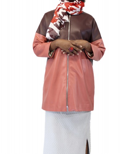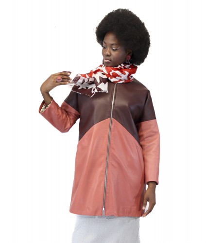 Elegante chaquetón de piel vacuna Nagy en un cautivador tono borgoña, diseñado para destacar tu estilo. Su piel de alta calidad, trabajada en dos tonalidades sutiles, aporta una profundidad visual única. El cierre de cremallera asegura un ajuste perfecto, mientras que los dos bolsillos laterales ofrecen funcionalidad y estilo. El interior está revestido con una suave seda estampada en una gama de colores complementarios, creando un contraste sofisticado y envolvente. Una pieza atemporal que elevará cualquier conjunto.