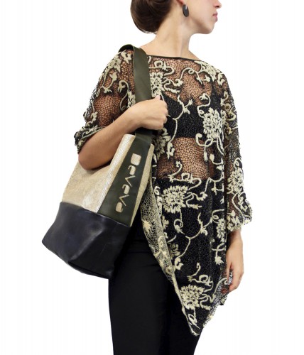 Poncho negro camel, elegante pieza realizada en encaje y reversible, para cualquier ocasión.