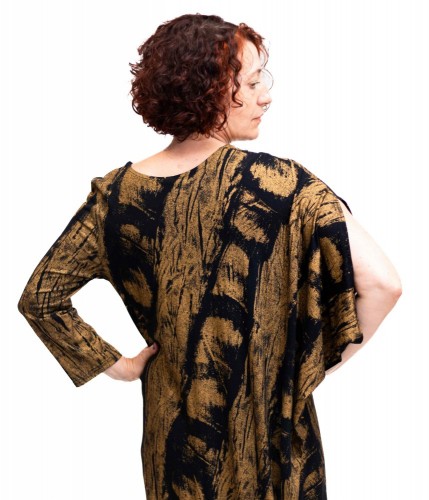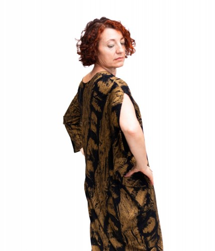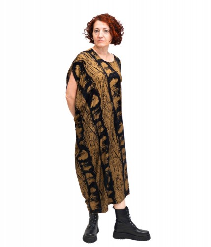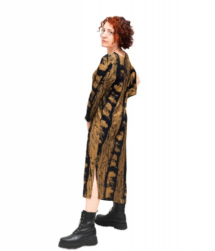 Sumérgete en la elegancia con nuestro vestido trazos, una obra de arte confeccionada con algodón de abrigo para los días más fríos. Su diseño de corte recto, acentúa tu figura con sofisticación, mientras que los estampados vanguardistas añaden un toque de modernidad. Perfecto para ocasiones especiales donde deseas destacar con estilo