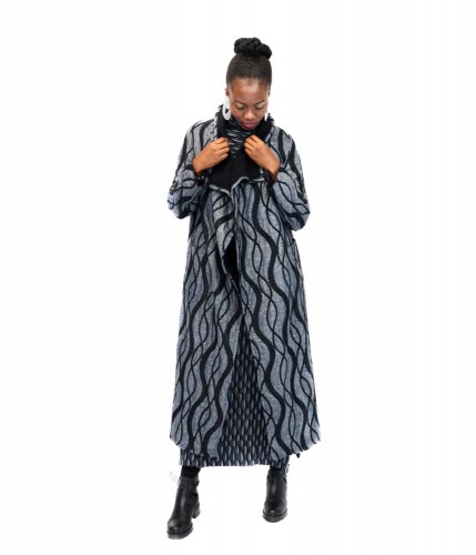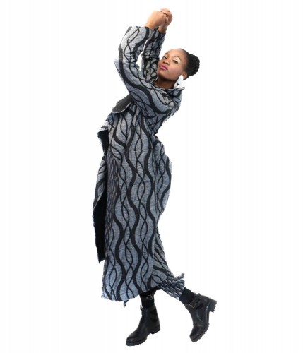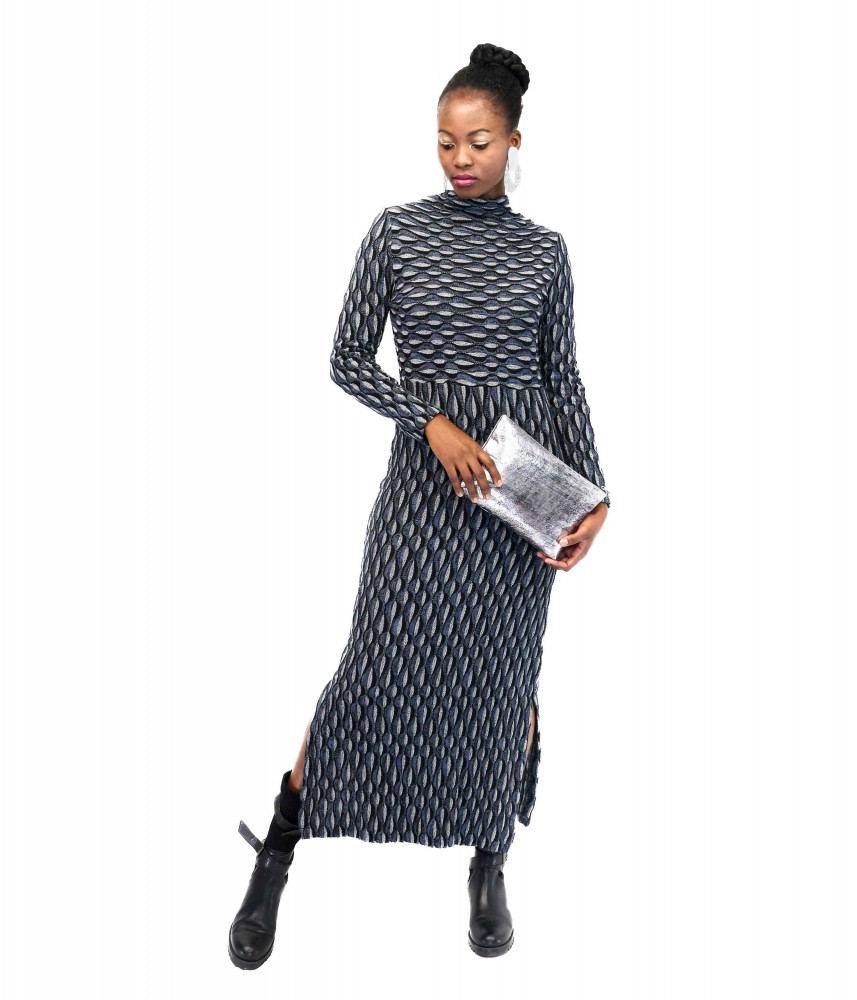 Nuestro vestido ajustado, diseñado para realzar tus curvas, presenta un estampado geométrico de olas que te transportará a un mundo de elegancia y sofisticación. La combinación de la tela suave y elástica con el patrón dinámico crea una pieza única y versátil, perfecta para cualquier ocasión
