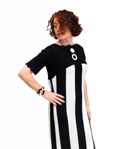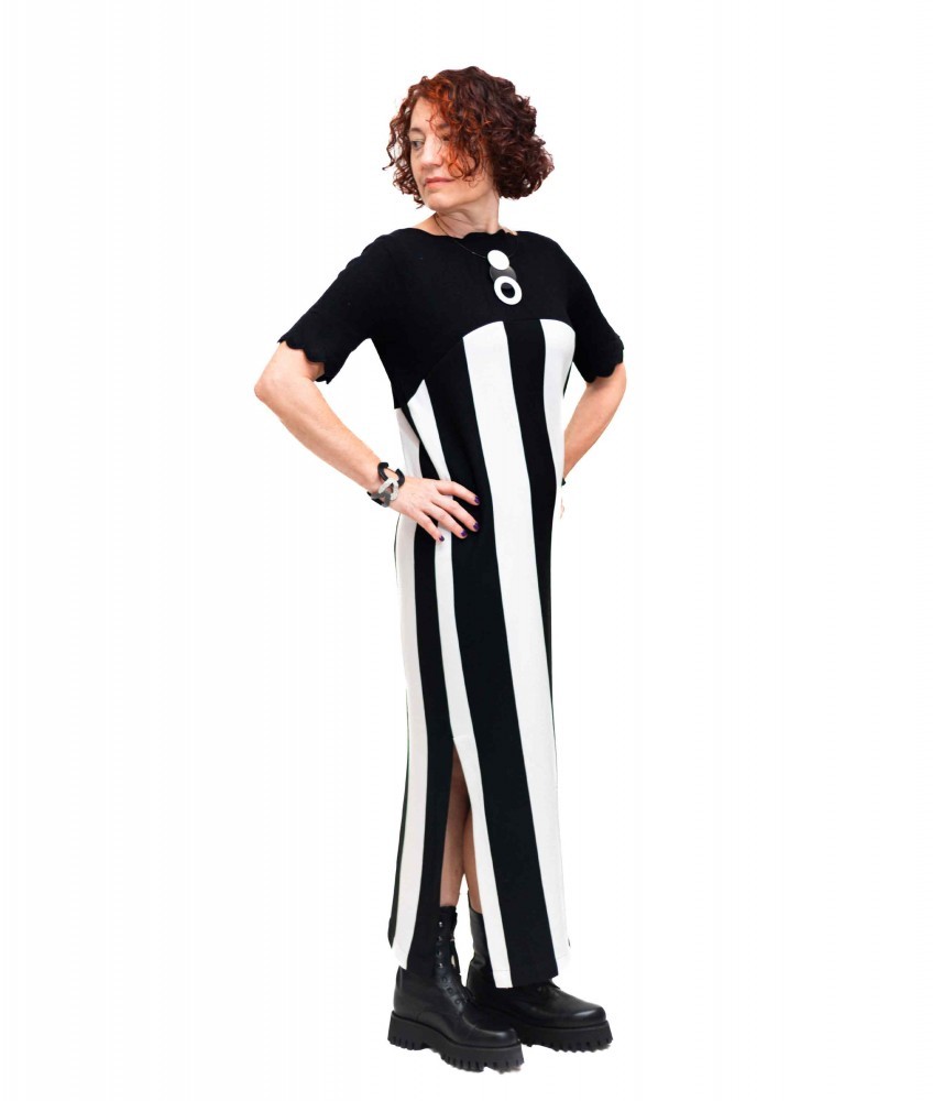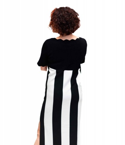 El vestido Claire blanco y negro es una pieza elegante y sofisticada que combina a la perfección la sencillez del blanco con la atemporalidad del negro. Confeccionado en telas de alta calidad, este vestido cuenta con detalles en encaje que añaden un toque de feminidad y glamour. Su corte clásico y favorecedor lo convierten en una elección ideal para eventos formales o cenas especiales. La combinación de colores contrastantes crea un efecto visual impactante que te hará destacar con estilo.